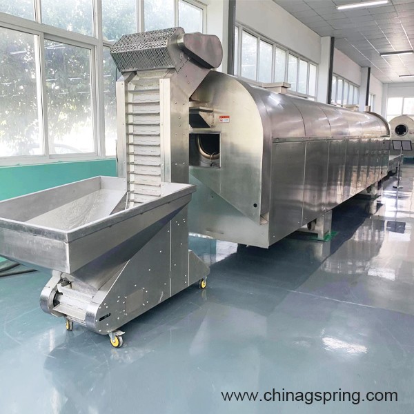 The drum design, combined with spiral blades, ensures continuous tumbling of peanuts during the roasting process, achieving uniform heating and preventing localized overheating or burning.