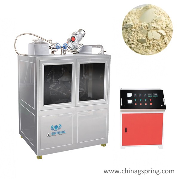 The whole system is composed of stock bin,crushing chamber,traction fan,cyclone separator,liquid nitrogen tank liquid nitrogen is as the cold source,materal at low