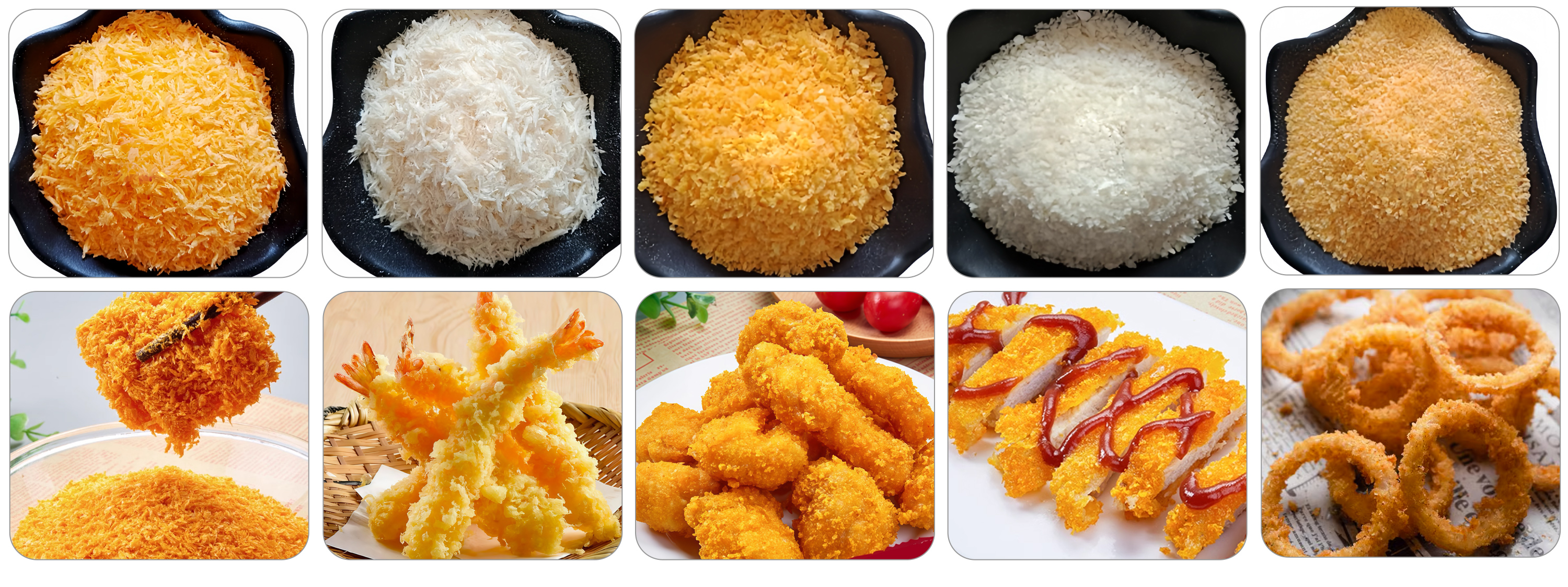 From the appearance, both Fermented/Panko Bread Crumbs & Extruded Bread Crumbs all can do the similar, so most of customer can’t distinguish by eyes.